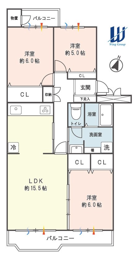 | 間取内容 | LDK 約15.5帖・洋室 約5.0帖・洋室 約6.0帖・洋室 約6.0帖 図面と現況が異なる場合は現況を優先します。 | ||