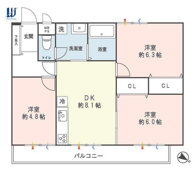 | 間取内容 | DK 8.1帖・洋室 6.0帖・洋室 6.3帖・洋室 4.8帖 図面と現況が異なる場合は現況を優先します。 | ||