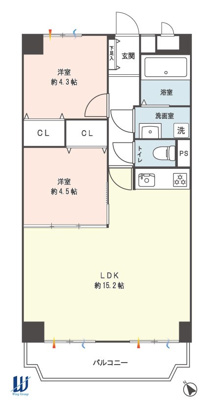 | 間取内容 | LDK 15.2帖・洋室 4.3帖・洋室 4.5帖 図面と現況が異なる場合は現況を優先します。 | ||