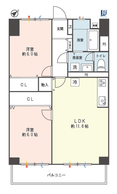 | 間取内容 | 2LDK 約11.6帖・洋室 約6帖・洋室 約6帖 図面と現況が異なる場合は現況を優先します。 | ||