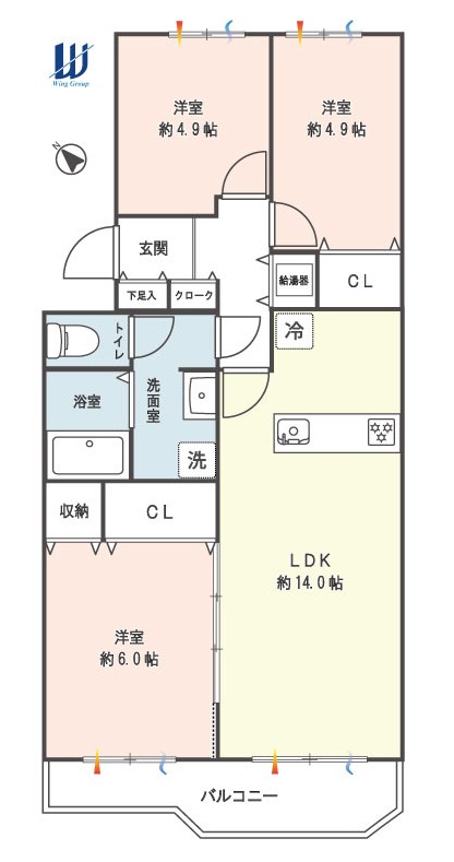 | 間取内容 | LDK約 14.0帖・洋室約 6.0帖・洋室約 4.9帖・洋室約 4.9帖 図面と現況が異なる場合は現況を優先します。 | ||