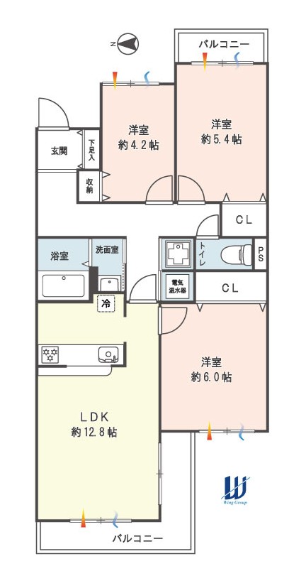 | 間取内容 | LDK 12.8帖・洋室 6帖・洋室 5.4帖・洋室 4.2帖 | ||