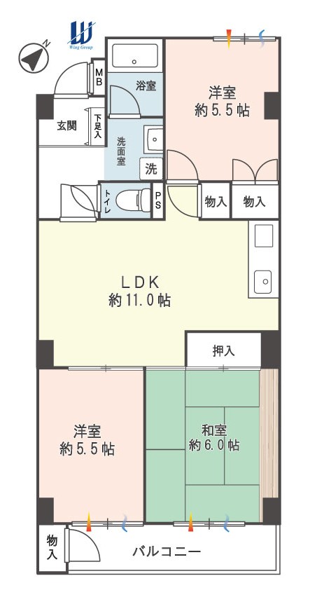 | 間取内容 | LDK 約11.0帖・洋室 約6.5帖・洋室 約6.0帖・洋室 約5.5帖 図面と現況が異なる場合は現況を優先します。 | ||